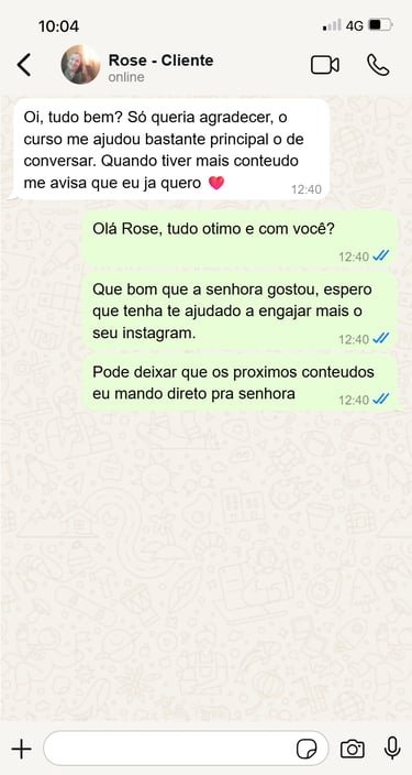 "Quero agradecer, o curso me ajudou bastante principalmente o de conversas" - Rose
