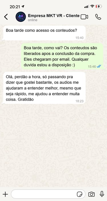 "Os audios me ajudaram a entender melhor" - Mkt VR
